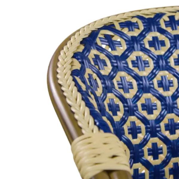 La médula de asiento y respaldo es un diseño bicolor en azul y crema.