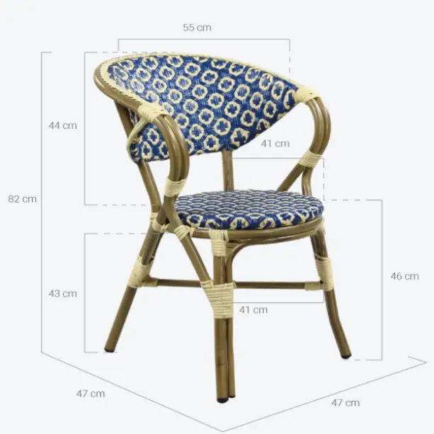 Sillones de aluminio y médula sintética para terraza de hostelería.